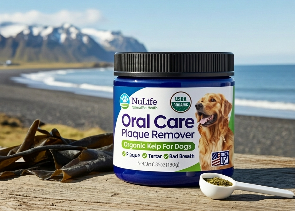 A. Yes. Sea kelp powder — specifically Ascophyllum nodosum — contains natural enzymes that work through your dog's saliva to reduce plaque and tartar buildup on their teeth. It's one of the most effective natural dental supplements available for dogs and is used daily by thousands of pet owners as an alternative to brushing.