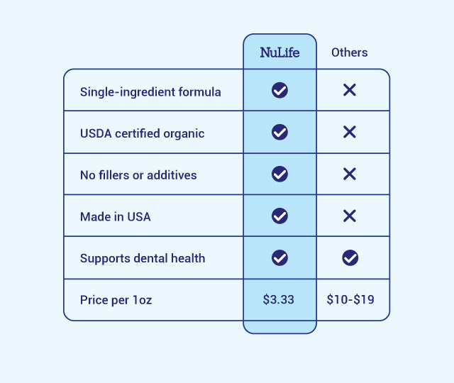 A. Most dog teeth cleaning powders contain a blend of ingredients including artificial flavours and additives. Our formula contains just one ingredient — USDA certified organic Icelandic kelp. Nothing added, nothing artificial. Just the natural power of seaweed powder for dogs teeth.